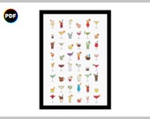Cosmopolitan Cocktail Cross Stitch Pattern - Martini Glass (Digital Download)