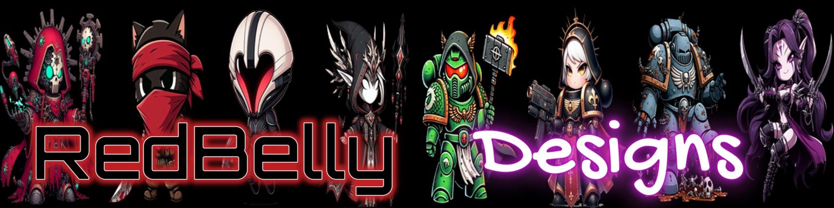Hi! I’m RedBelly. I’m a lifelong hobbyist, painter, and tabletop gamer who fell in love with the epic worlds of sci-fi and fantasy wargaming. I spend my time creating original, eye-catching art inspired by the armored warriors, grimdark battles, and larger-than-life characters we all love building, painting, and playing on the tabletop.