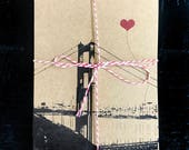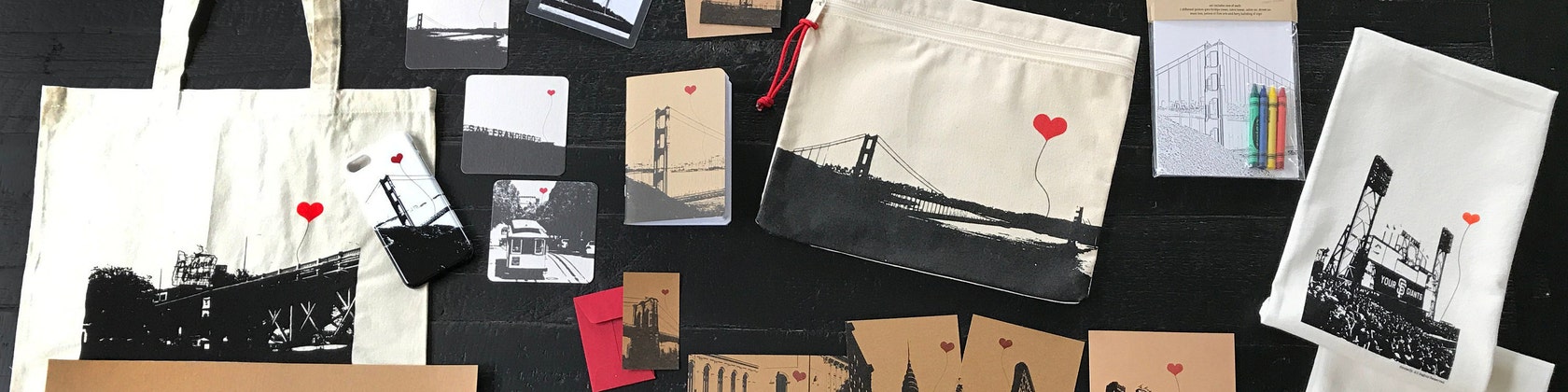 My unique process of altering either my original photographs, or vintage illustrations, doesn’t allow for copying, as someone would have to take the exact same photograph from the exact same angle in the exact same conditions, for instance. I add my signature heart balloon to all of the city images as homage to what that building or landmark evokes in people. Then the cards, for instance, are printed on kraft paper, hence the eco-friendly base.