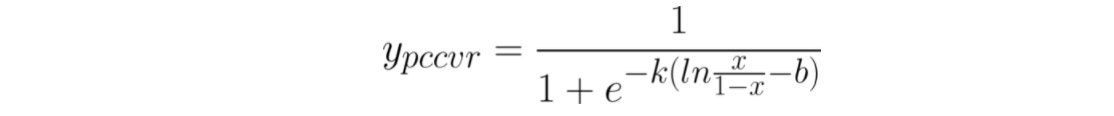 To solve these issues, we refitted the logit of predicted PC-CVR with a smoother logistic regression. Below is the proposed function: