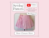 5 out of 5 starsSo cute, video tutorial is super helpful for beginners. Not sure if it's designed to be low waisted, but i like to wear my skirts high waisted so I sized down and put the ties further to the side. I made a mini and a midi, and it definitely works better as a mini skirt as the bow closures don't love holding up large amounts of fabric.