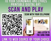 Yes! I can add a QR code to YouTube, Spotify, AppleMusic, AmazonMusic or any source of your choice, and you will be able to scan it with your cellphone and listen to the song from the web source. Please purchase this additional listing: https://www.etsy.com/ca/listing/856224266/qr-code-for-custom-sound-wave-printable.