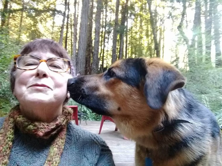 My joy. My love, My constant companion ❤ Photo taken on our deck at our home in the Redwoods of Northern California. -