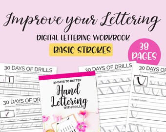 Brush Lettering Practice Workbook | Basic Strokes | Basic Stroke Practice for Beginners or Warm-Ups | Calligraphy | Instant Download