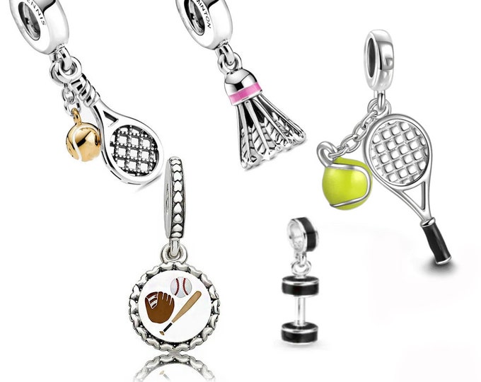 Charm deportivo de plata de ley compatible con pulsera Pandora: tenis, bádminton