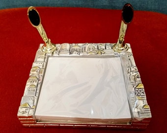Israel gift Silver coated Pen holder Jerusalem walls design desk gift