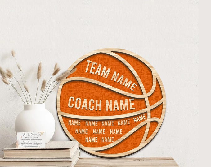 Personalized Basketball Layered Wood Sign, Custom Name Coach Sign, Team Wall Decor Keepsake, Gift for Coach Son Team
