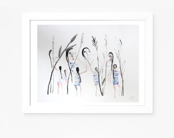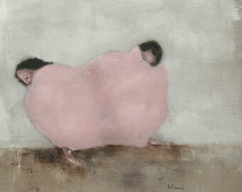 Giclee art print of figurative painting. girls portrait painting wall art. pale pink. "Cozy"