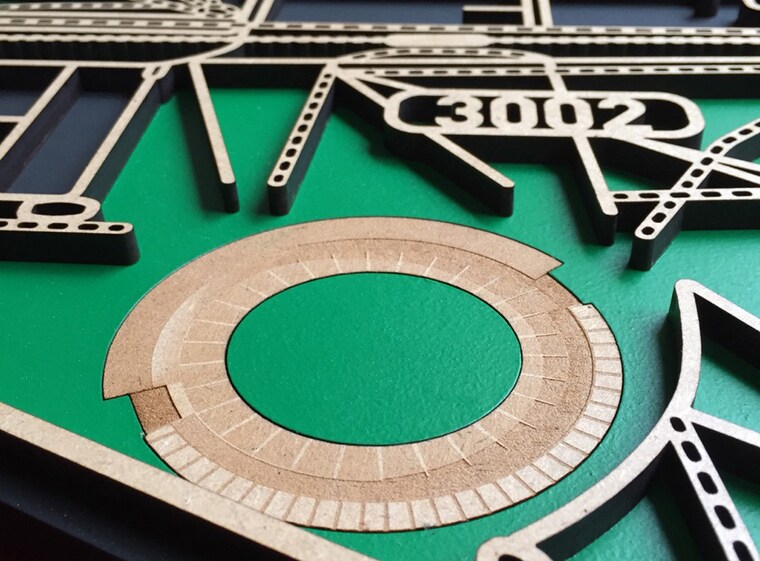 East Melbourne - MCG. The addition of tonal / photographic engraved major landmarks opens up exciting possibilities.