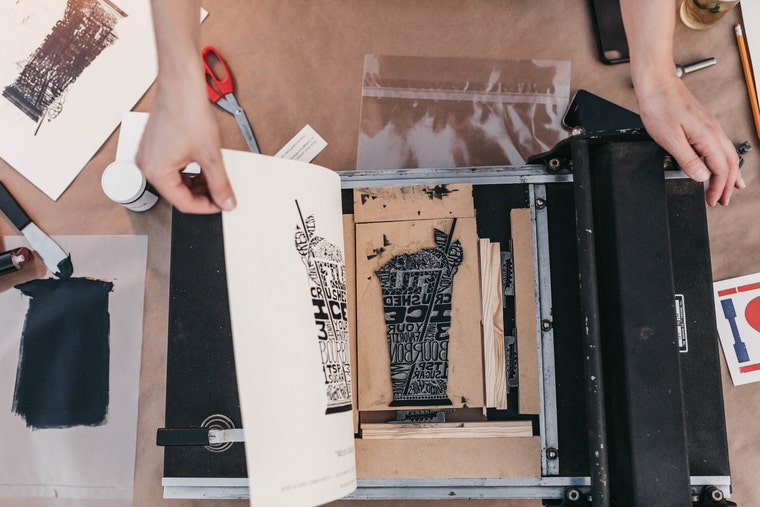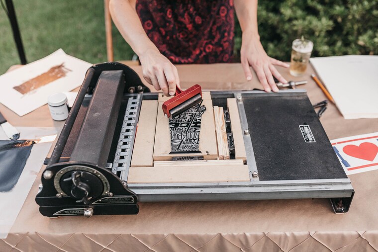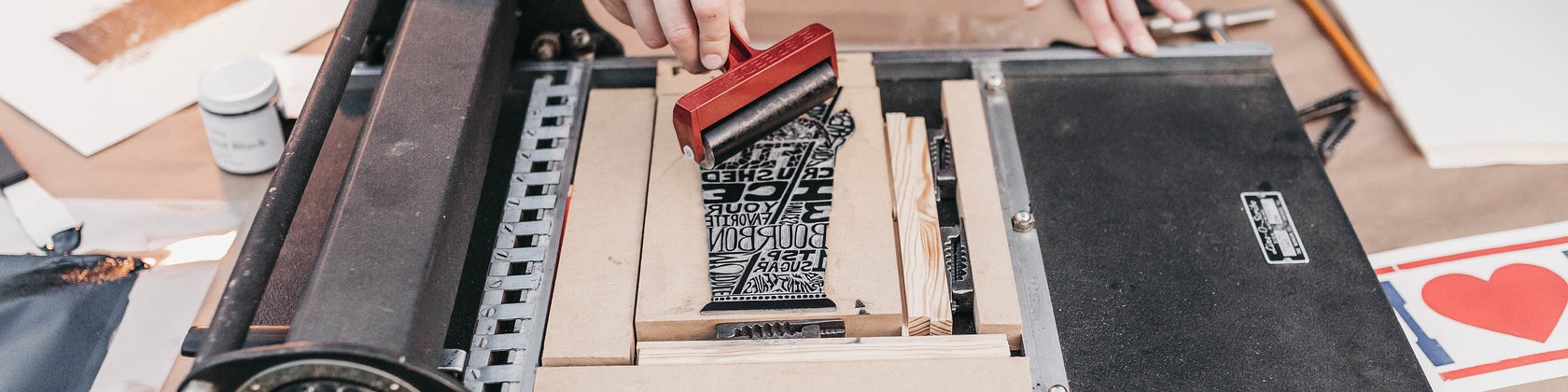 Using my new[old] Line-O-Scribe letterpress to print these linoleum-cut cocktail recipes! -