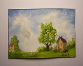 5 de 5 estrellasBeautiful watercolor art. I love the colors and the wee house. Perfect addition to my tiny art collection. Very well packaged and fast shipping, too!