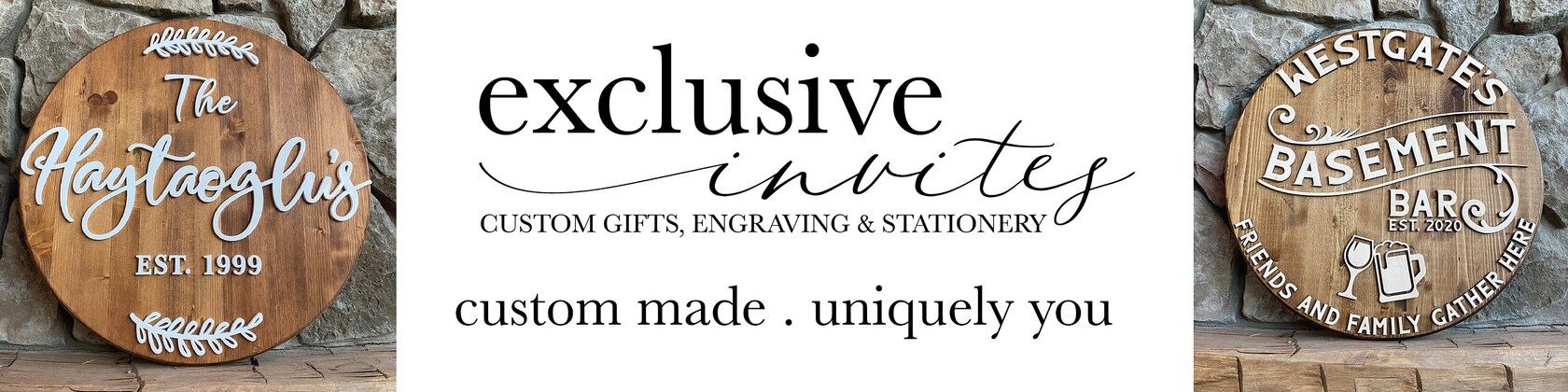 Hi! I'm Amber, owner of Exclusive Invites, a Custom shop specializing in Lasercut and Engraved Pieces. In business for 10+ years with a retail store in Belleville ON. Custom Jobs are always welcome, Contact us with your custom request.