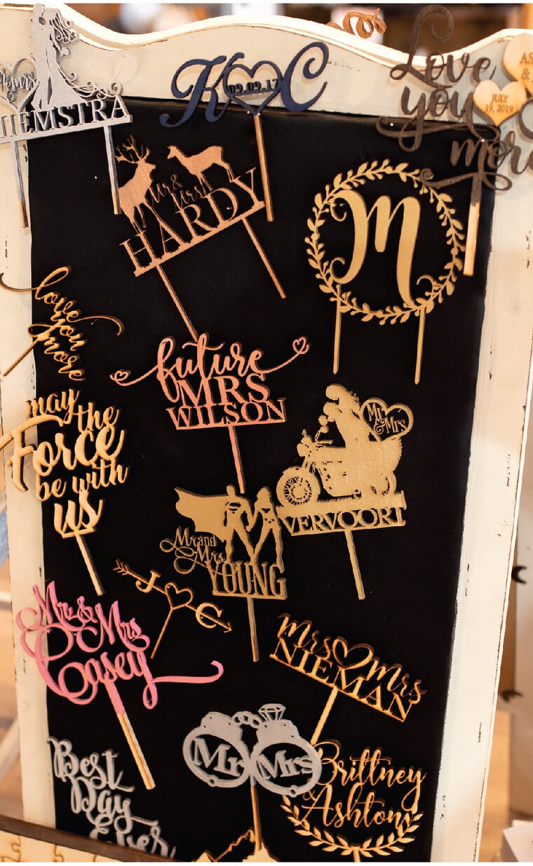 Custom Cake Tops, Table Numbers and so much more! If you can think of it, we can cut it out for you. -