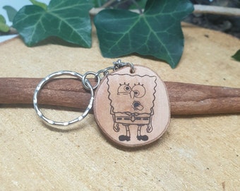 Keychain Wood | Engraving | Spongebob | rear + front engraved | Rotatable