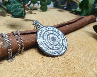 Patina Metal Pendant | Zodiac Disc | Stainless steel necklace | for women | Silver