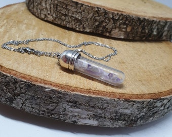 Stainless steel amethyst necklace | Antique Silver | Nickel-free