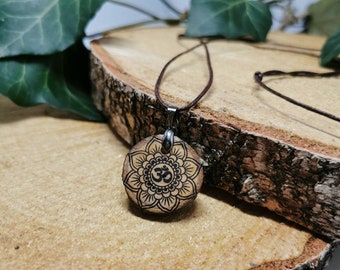 Wooden chain | Engraving | Mandala | OM | with adjustable leather strap