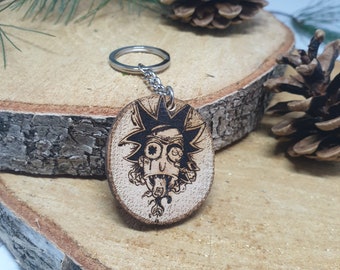 Keychain Wood | Engraving | Rick & Morty | rear + front engraved | Rotatable
