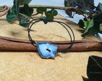 Agate Disc | Bracelet | dark blue stone | Gilded