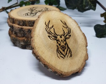 6 Engraved Coasters | Wood | Deer Design | handmade wooden coasters | Coaster Set | Table decoration