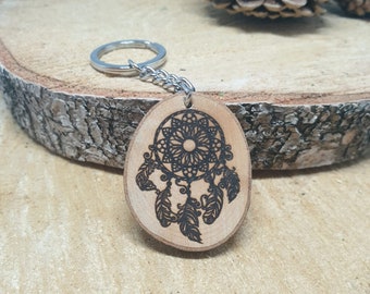 Keychain Wood | Engraving | Dream Catcher | rear + front engraved | Rotatable