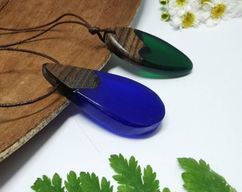 Pendant made of wood and synthetic resin | with adjustable leather strap | Genuine handicraft