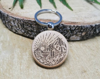 Keychain Wood | rotatable | Engraving | mountains | Wanderlust