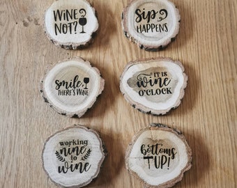 6 Engraved Coasters | Wood | Vino Design | handmade wooden coasters | Coasterset | Table Decoration | Wine