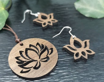 Jewellery Set | Earrings and necklace | Wood | Lotus Design | handmade earrings and chain | Jewelry