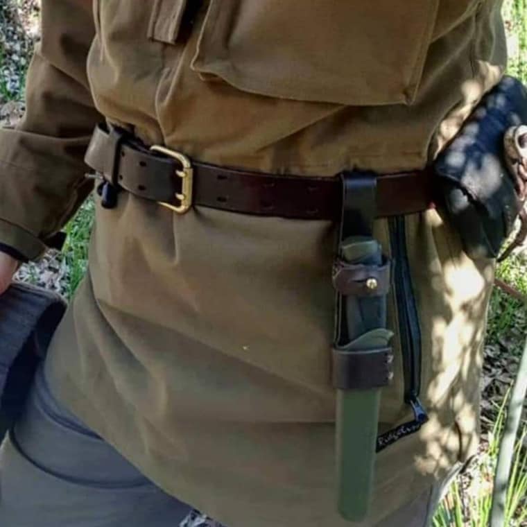 5 de 5 estrellasLa funda del cuchillo está hecha con excelente artesanía, diseñada para durar 100 años. El cuero, las costuras y los herrajes son de primera calidad.