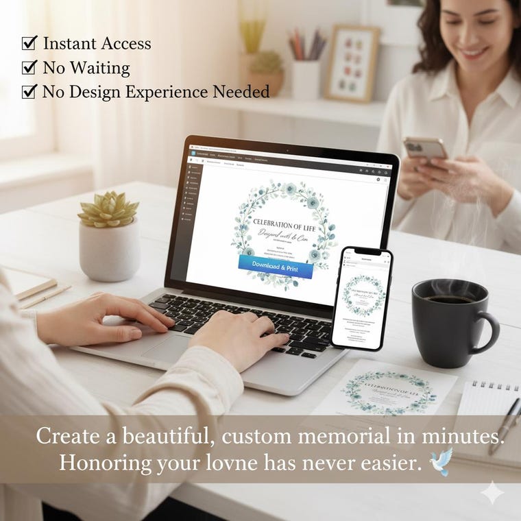 Our mission is to provide high-quality, easy-to-edit Canva memorial templates that you can instantly download and personalize — even with zero design experience. Every design is thoughtfully crafted to be simple, professional, and ready to print, saving you valuable time during emotional moments.