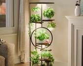 4 out of 5 starsThe lights aren’t as bright as I thought they would be but there is a built in timer which is cool. It feels sturdy and the hardware is nice! It looks great but be aware the bottom shelf for bigger plants is very narrow. None of my mature plants could go anywhere on this shelf. It took forever to get here but that was communicated with me ahead of time with an opportunity to back out! I’m happy overall but one (very obvious) thing that didn’t occur to me is the highest plant will not have light. Plan for it to be near sun or another grow light, or clamp another grow light for the highest shelf.