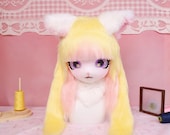 Pastel yellow and pink furry alpaca couple plush, fluffy long fur and cute paws, adorable Shoes gift for kawaii furry -