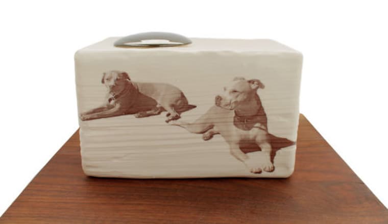 Somos Meg Oliver y Lucie Piedra, amigas desde hace mucho tiempo, artistas de cerámica y amantes de los animales con tres perros, dos gatos y siete gallinas entre nosotros. Ambos graduados del New York State College of Ceramics en alfred University, nos conocimos como artistas residentes en el Byrdcliffe Ceramic Studio en 2001 y hemos seguido siendo amigos. En la primavera de 2011, ambos tuvimos cachorros jóvenes y bulliciosos. Comenzamos a tener citas de juego de cachorros que nos llevaron a alternar días de trabajo en los estudios de los demás. Mientras nos ayudábamos mutuamente con el trabajo de estudio y veíamos jugar a los cachorros, nos dimos cuenta de que ambos habíamos perdido mascotas cuyas cenizas yacían en contenedores feos en nuestras casas. Nuestra siguiente tarea fue diseñar y crear urnas que se sintieran personales y reflejaran nuestros gustos. Esta fue la chispa que finalmente nos llevó a encontrar un espacio y abrir nuestro estudio colaborativo. Comenzamos haciendo urnas para cada una de nuestras mascotas y luego decidimos llenar el vacío en el mercado con urnas simples, modernas y personales.