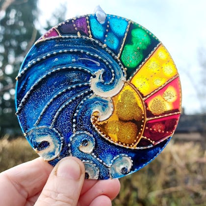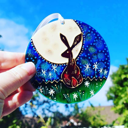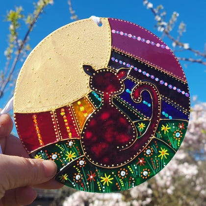 I work with glass and acrylic pieces and decorate them using outliners and glass paints. As each one is hand painted, no two are identical, therefore you are guaranteed a unique piece.