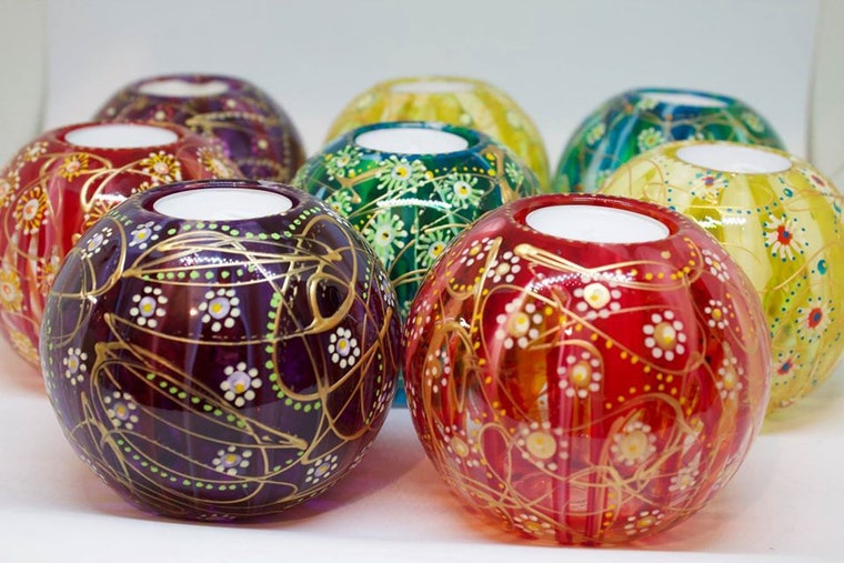 Trabajo con piezas de vidrio y acrílico y las decoro con delineadores y pinturas de vidrio. Como cada uno está pintado a mano, no hay dos idénticos, por lo tanto, se le garantiza una pieza única.