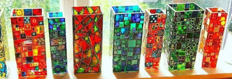 Como probablemente puedas adivinar en mi tienda, me encanta el color!!!! ¡¡Cuanto más brillante mejor!! Los colores llamativos y brillantes funcionan muy bien en vidrio. Imitan los vitrales maravillosamente, lo que significa que se pueden crear algunas piezas impresionantes.