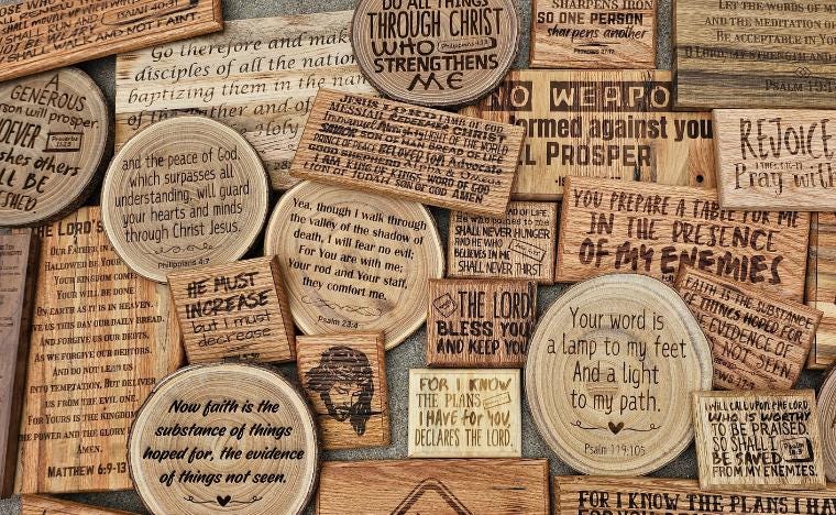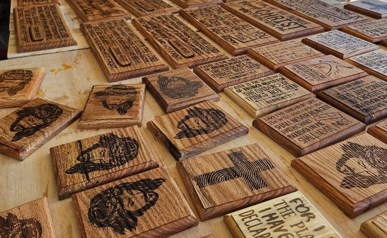 The solution was clear: We needed to surround ourselves with the loving and wise words of the Lord. Using reclaimed pallet wood from the metal factory down the street and natural edge rounds cut from down trees in the nearby forests, I put our laser engraving machine to work, cranking out my favorite verses and hanging them on the walls throughout our home. We were protected and blessed by this decision, growing in our walk with the Lord.