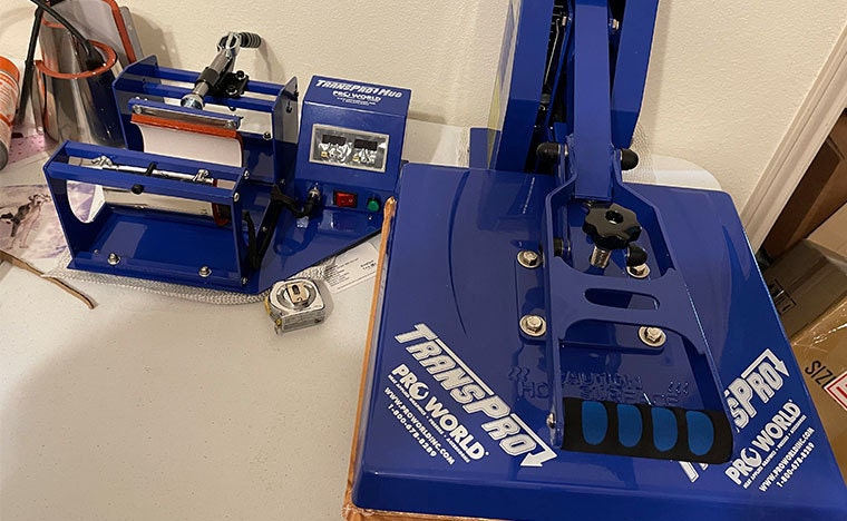 Heat presses to make face masks, shirts, and mugs -