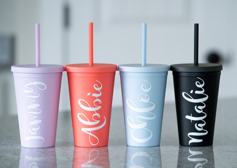 We do not customize or personalize tumblers in our shop, but they make a great blank surface for all of you crafty vinyl decal designers!