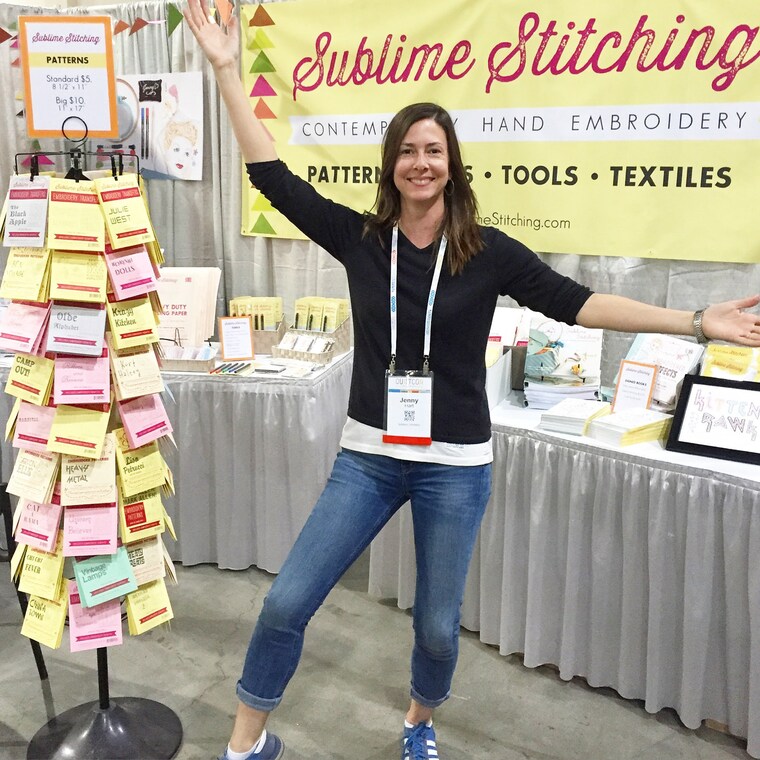 Todavía poseo y opero Sublime Stitching de forma independiente, y todos nuestros productos están diseñados, dirigidos por arte o curados por mí. La mayoría de los patrones de bordado en el catálogo fueron dibujados por mí, pero lo que más me gusta hacer es colaborar con artistas desconocidos, emergentes y establecidos (Tuesday Bassen, Carson Ellis, Daniel Johnston, Emily Martin) para transformar sus obras de arte en patrones de bordado para ti. También me encanta desarrollar e introducir herramientas, textiles y accesorios únicos para bordar (fundas de almohada de dobladillo estrecho, bolígrafos de transferencia de punta fina, Hoop Flair).