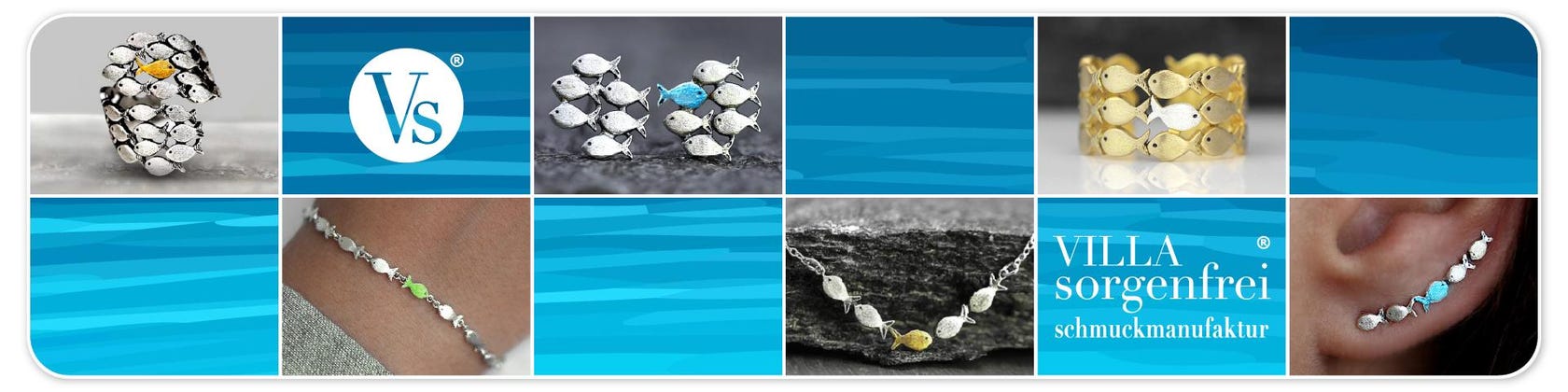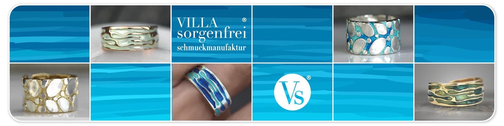 Claudia designt ihre charakteristischen Ringe, Halsketten, Armbänder und Ohrringe exklusiv nur für das von ihr gegründete Label Villa Sorgenfrei Schmuckmanufaktur®. Die Gestaltung der Kollektionen, die Auswahl der Materialien, die sorgfältige Veredelung der Schmuckstücke, das Marketing sowie der Versand und der Kundenservice erfolgen durch das engagierte kleine Team des Familienunternehmens.