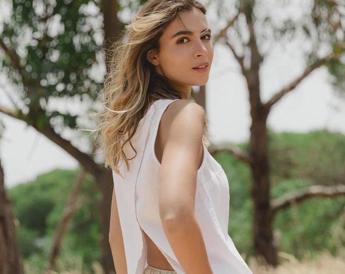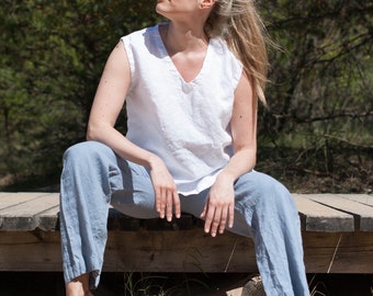 Sleeveless linen top ideas