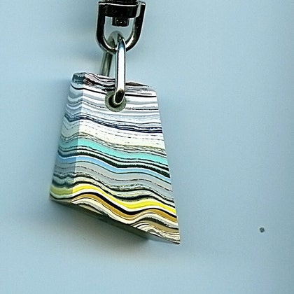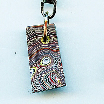 Fast forward to September of 2015, I was shopping on Etsy, and I came across a rock that wasn’t really a rock. It was called Fordite. I found it both interesting and unique. That evening, I was talking with wife about how I was considering buying a few pieces to chop up and make key chains from it. After some research, I had determined that no one, to my knowledge, had ever tried producing key chains from Fordite and I felt there might be a market for this idea. I bought a few pieces and started to produce the key chains learning the hard way how to handle this complex textured material. Through hours of trial and error, I developed different techniques and have implemented several short cuts to expedite the forming of each key chain.