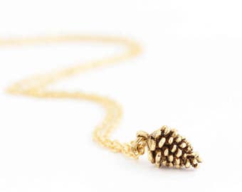 • Gold Pine Cone Necklace - Pine Cone Charm - Rustic Necklace - Woodland Jewelry - Woodland Necklace - Pine Cone Jewelry