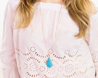 • Turquoise Jewelry - Turquoise Necklace - Gemstone Pendant - Boho Necklace - Long Gemstone Necklace - Gift For Her - Gemstone Necklace