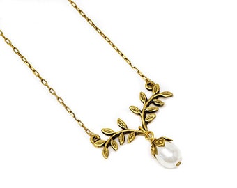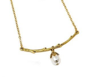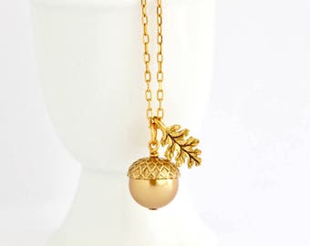 • Gold Acorn Necklace - Rustic Wedding - Acorn Jewelry - Brown Acorn - Woodland Jewelry - Gift For Mom - Woodland Theme - Pearl Acorn