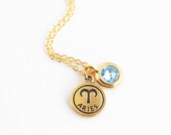 • Zodiac Jewelry - Celestial Necklace - Personalized Zodiac Necklace With Birthstone Charm - Astrology Pendant - Horoscope Necklace