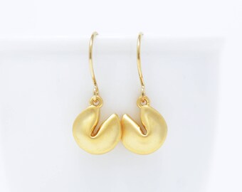 • Fortune Cookie Earrings - Dainty Gold Earrings - Gift For Her - Good Luck Earrings - Small Earrings - Golden Earrings - Gift For Woman