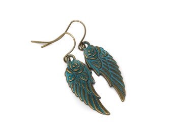 • Angel Wing Earrings For Women In Patina Green Brass Finish